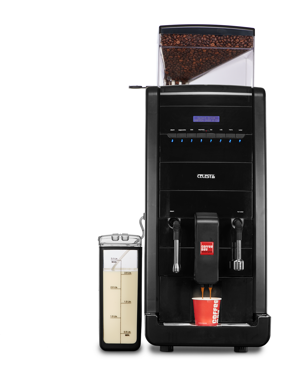 Celesta is fitted with 6 beverage options that allow you to choose from specialty coffees like cappuccinos, lattes and espressos. Along with coffee, you can even choose to offer teas and a host of other delicious beverages.